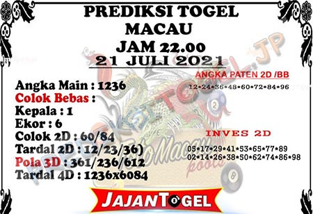 PREDIKSI TOTOMACAU MALAM 00.00 WIB Prediksi Toto Macau Malam Putaran 5 SABTU 06-05-2023 Prediksi toto macau yang kami berikan hari ini pastinya sudah dihitung secara tepat dan di rangkum menggunakan rumus togel yang ampuh. Prediksi Bocoran Angka Toto Macau 01 May 2023 Fajarprediksi - Prediksi Bocoran Angka Toto Macau 01 May 2023 ini kami rangkum untuk semua para pecinta togel Macau online. Prediksi Bocoran Angka Toto Macau 01 May 2023 ini diprediksikan oleh Tim Prediktor Kami Yang Berpengalaman Cukup Lama Dalam Bidang Ini. Agar Para Pecinta TogelOnline Dapat.